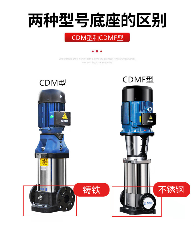 南方CDM/CDMF系列為參照歐洲標準最新自主研發(fā)的新一代、高效率非自吸立式多級離心泵。產品采用全新的工業(yè)設計,能效指標達到MEI≥0.7,具有節(jié)能、低噪、環(huán)保及機構緊湊、外觀美觀、重量輕、使用維護方便、可靠性高等特點。