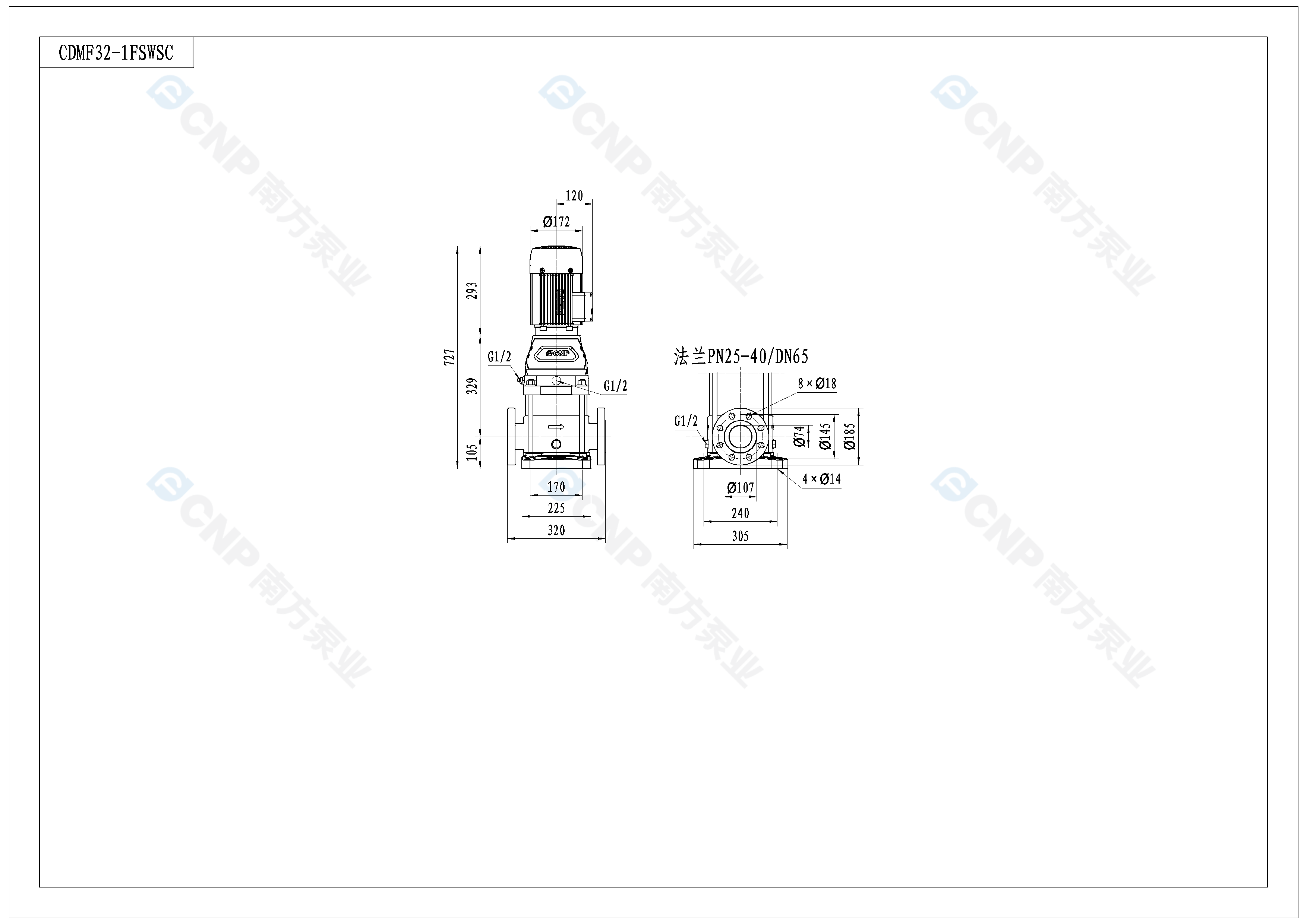 需要南方泵CDM32-1外形CAD文件 請加銷售人員微信索取