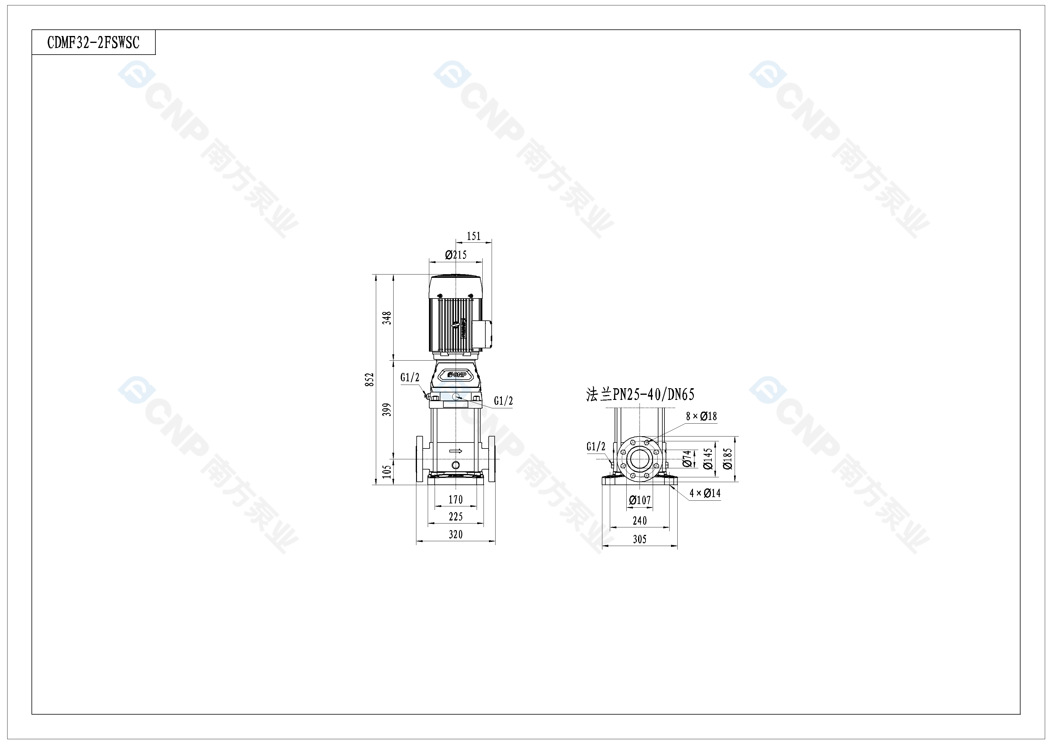 需要南方泵CDM32-2外形CAD文件 請加銷售人員微信索取