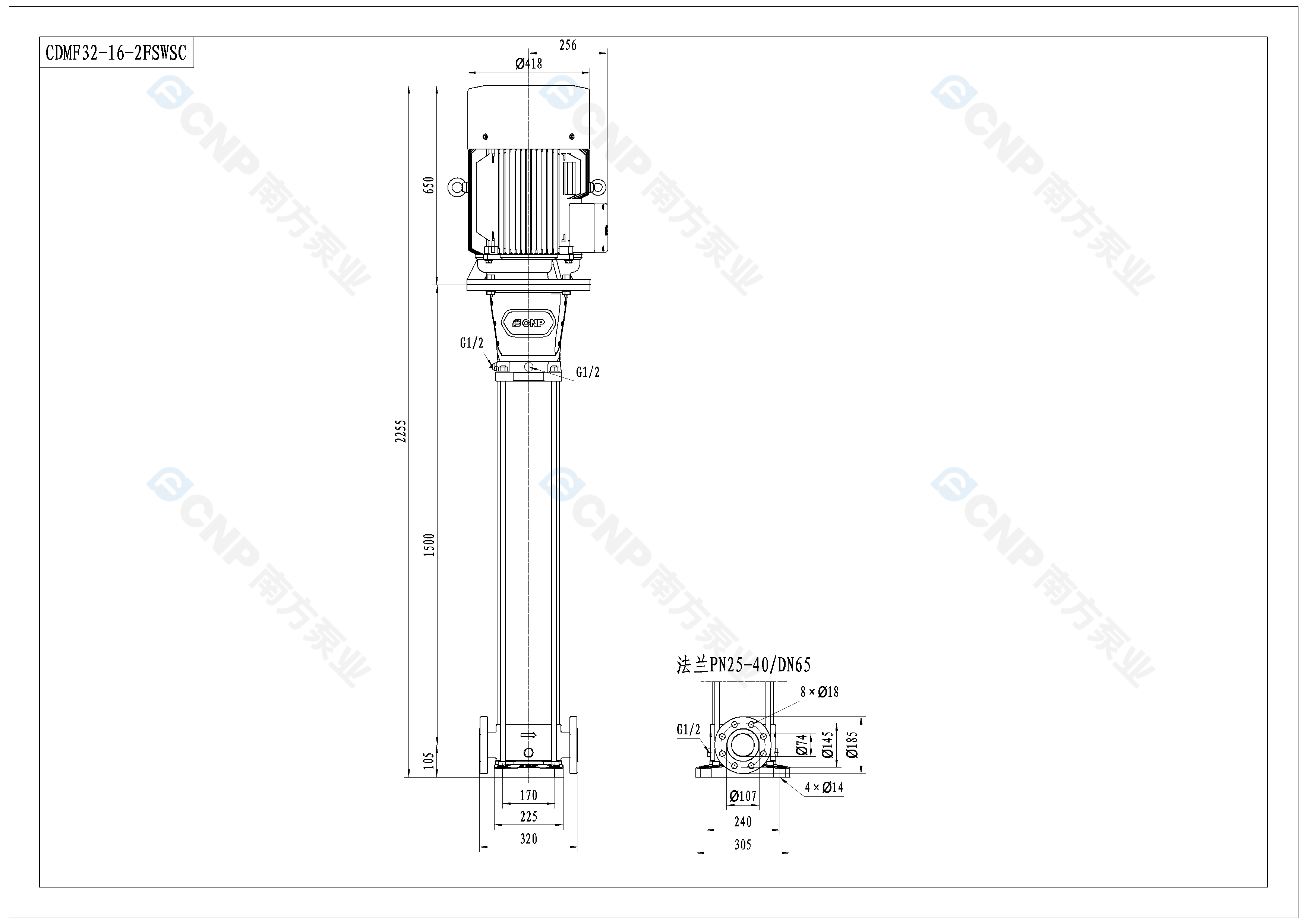 需要南方泵CDM32-16-2外形CAD文件 請加銷售人員微信索取