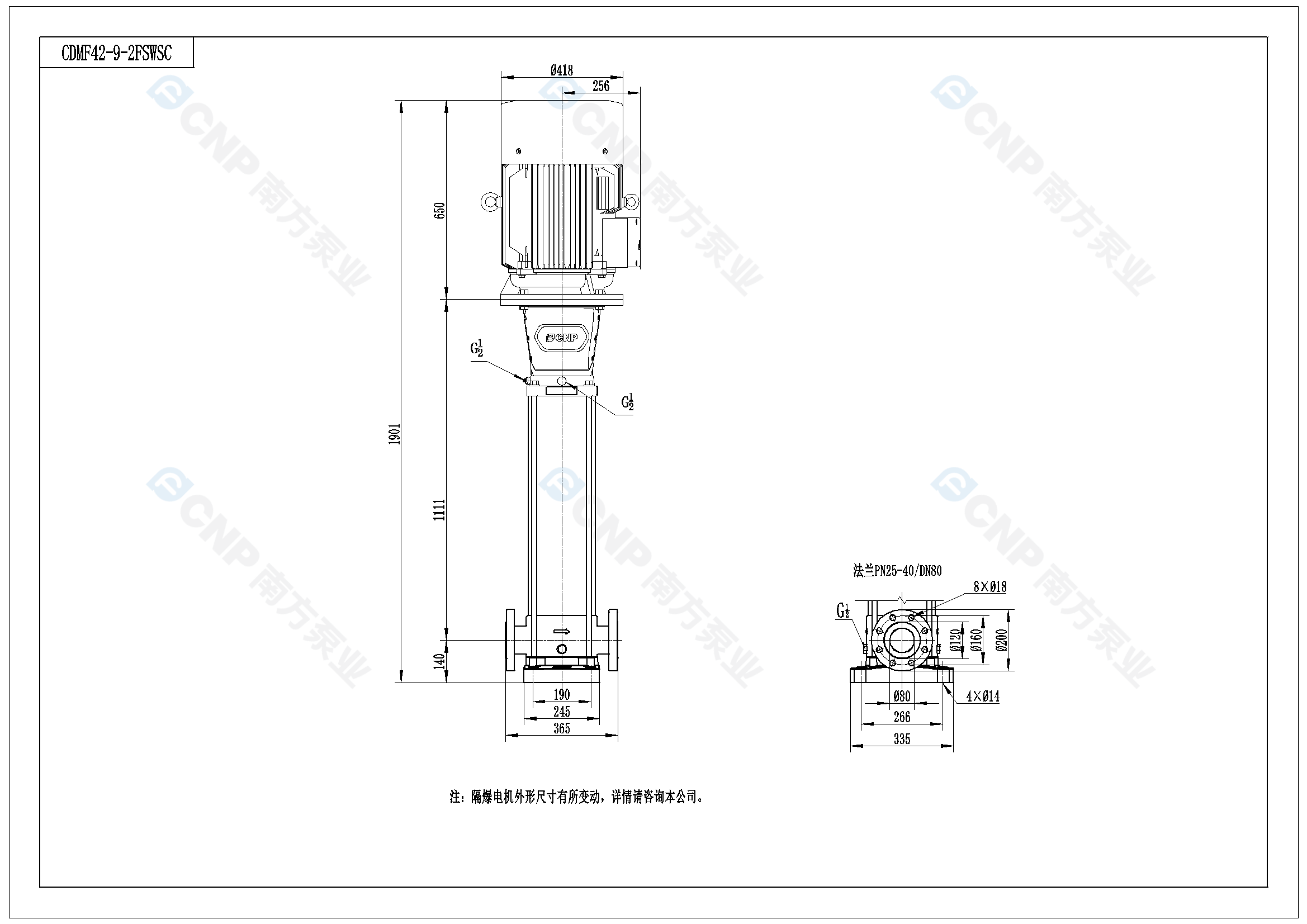 需要南方泵CDM42-9-2外形CAD文件 請加銷售人員微信索取