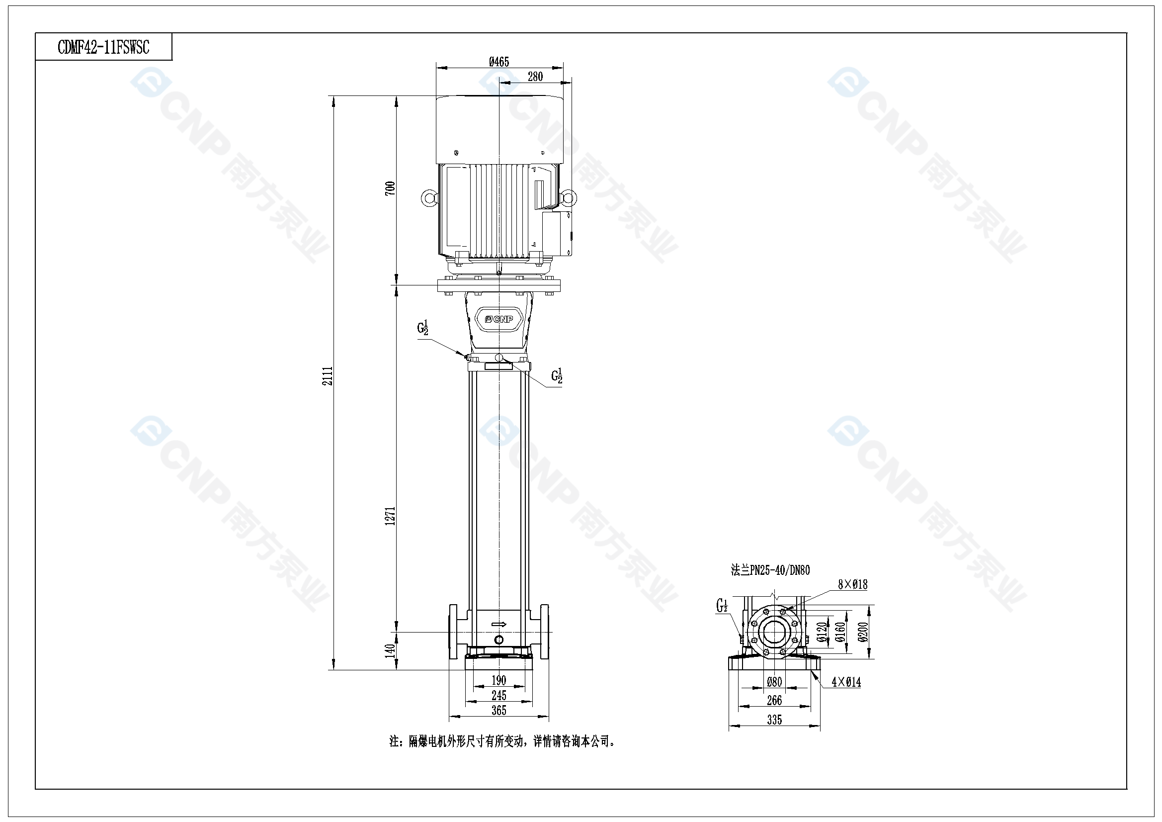 需要南方泵CDM42-11外形CAD文件 請加銷售人員微信索取