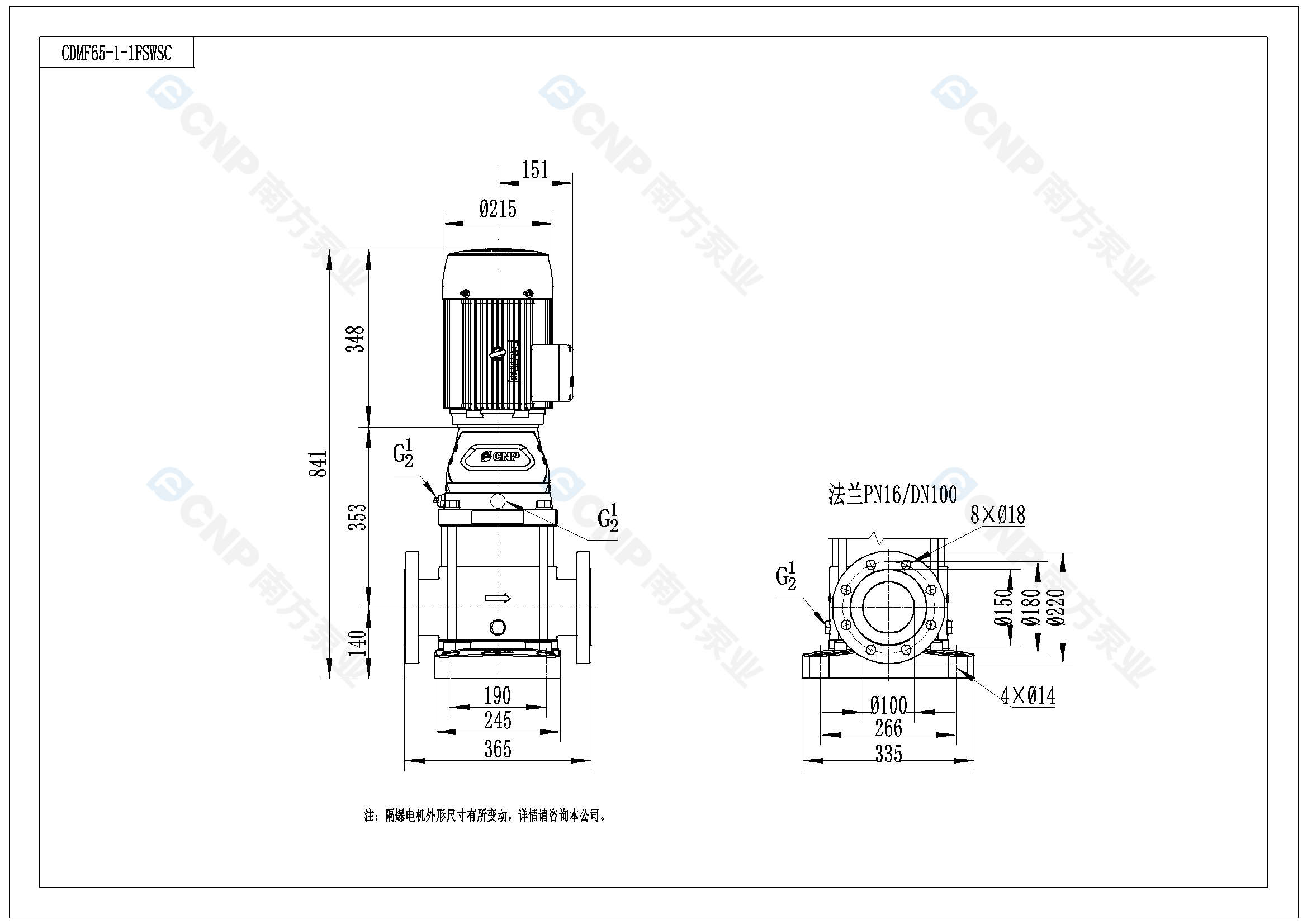 需要南方泵CDM65-1-1外形CAD文件 請加銷售人員微信索取