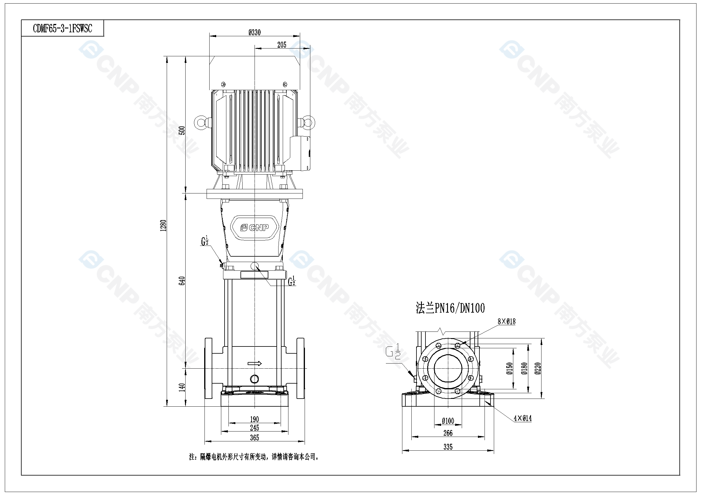 需要南方泵CDM65-3-1外形CAD文件 請加銷售人員微信索取