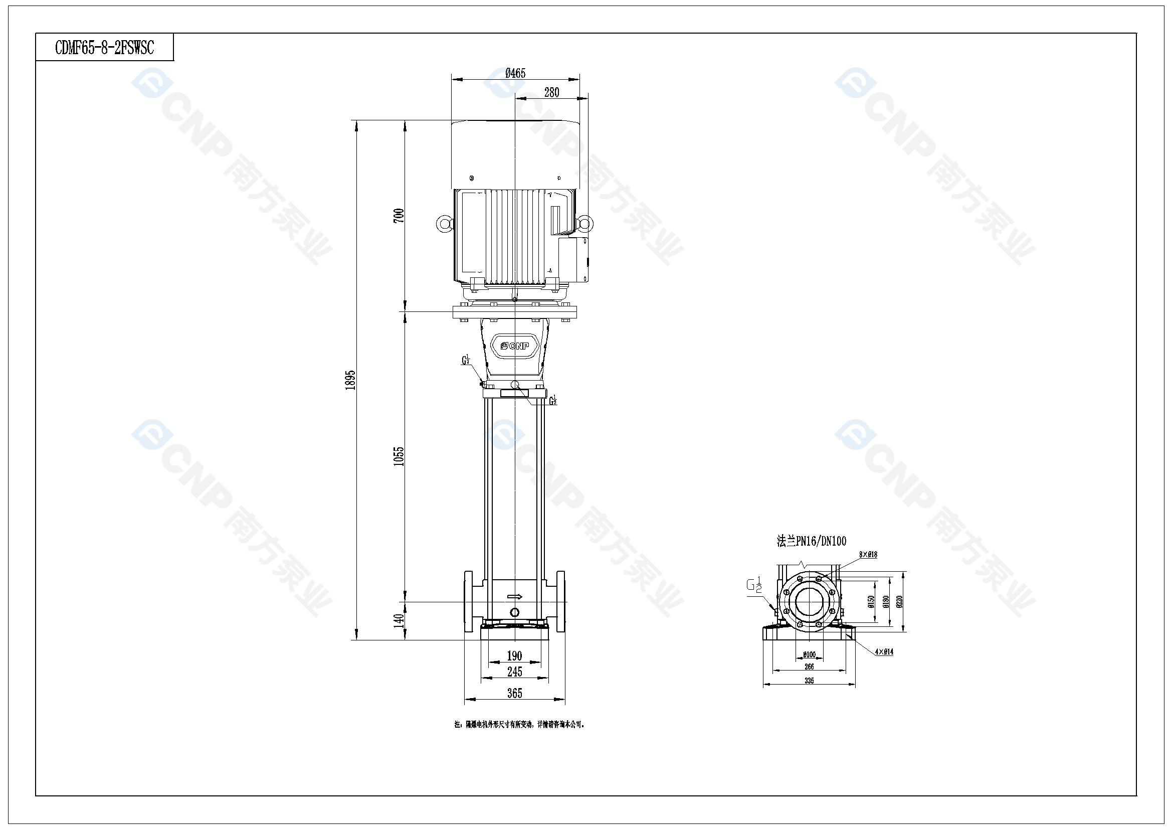 需要南方泵CDM65-8-2外形CAD文件 請加銷售人員微信索取