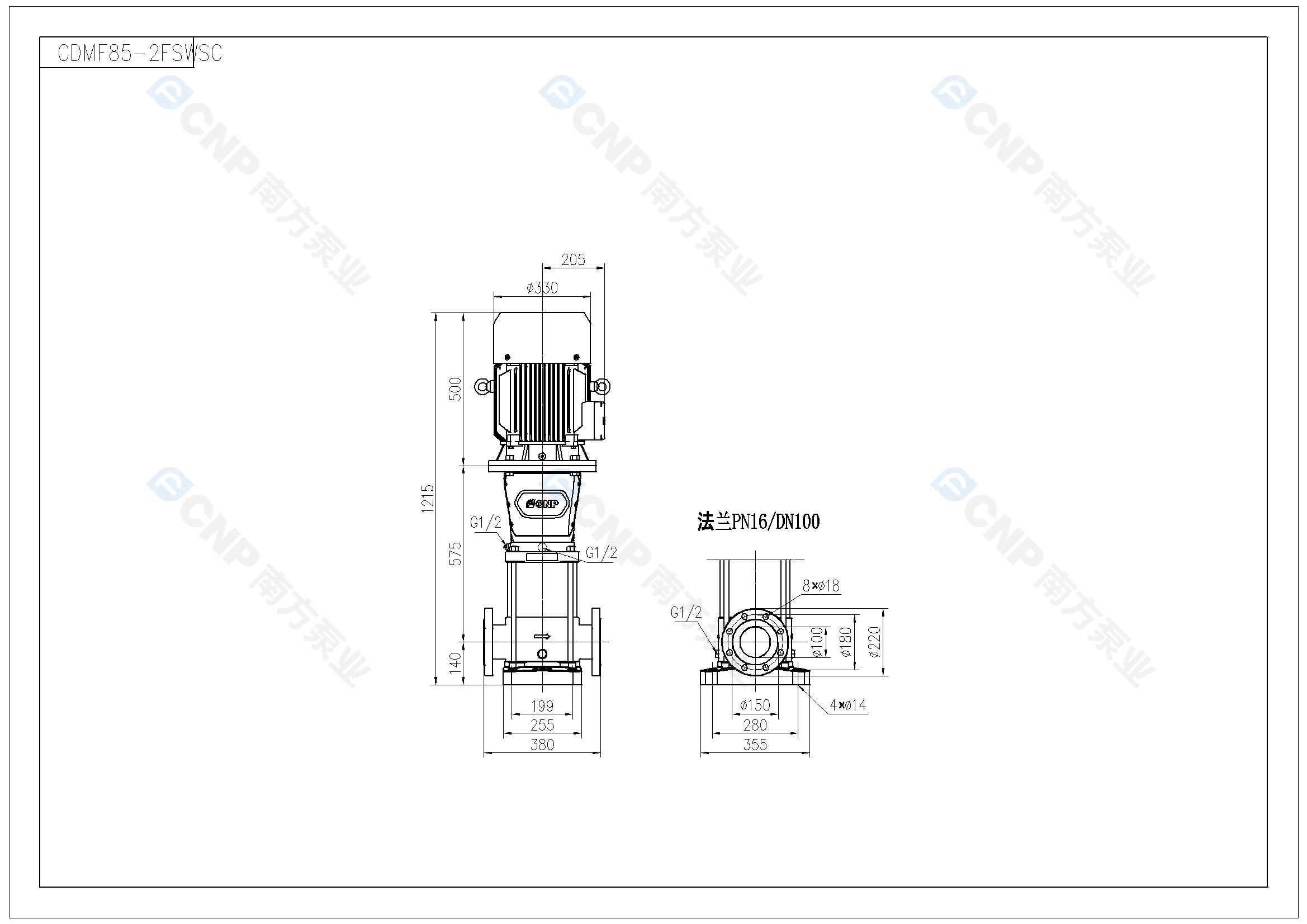 需要南方泵CDM85-2外形CAD文件 請加銷售人員微信索取