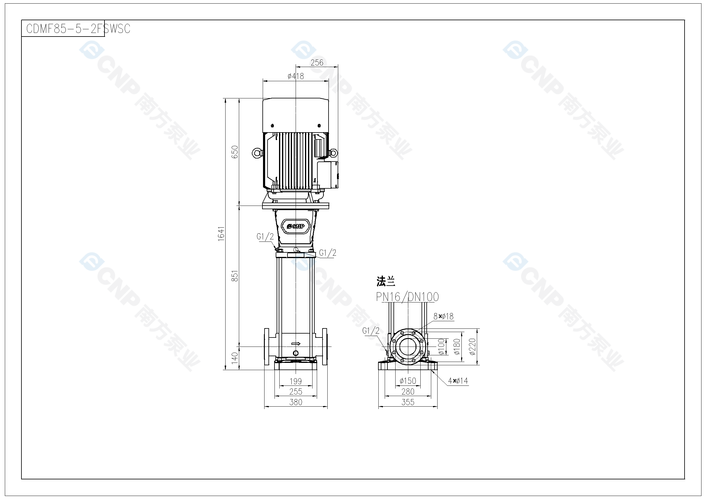需要南方泵CDM85-5-2外形CAD文件 請(qǐng)加銷售人員微信索取