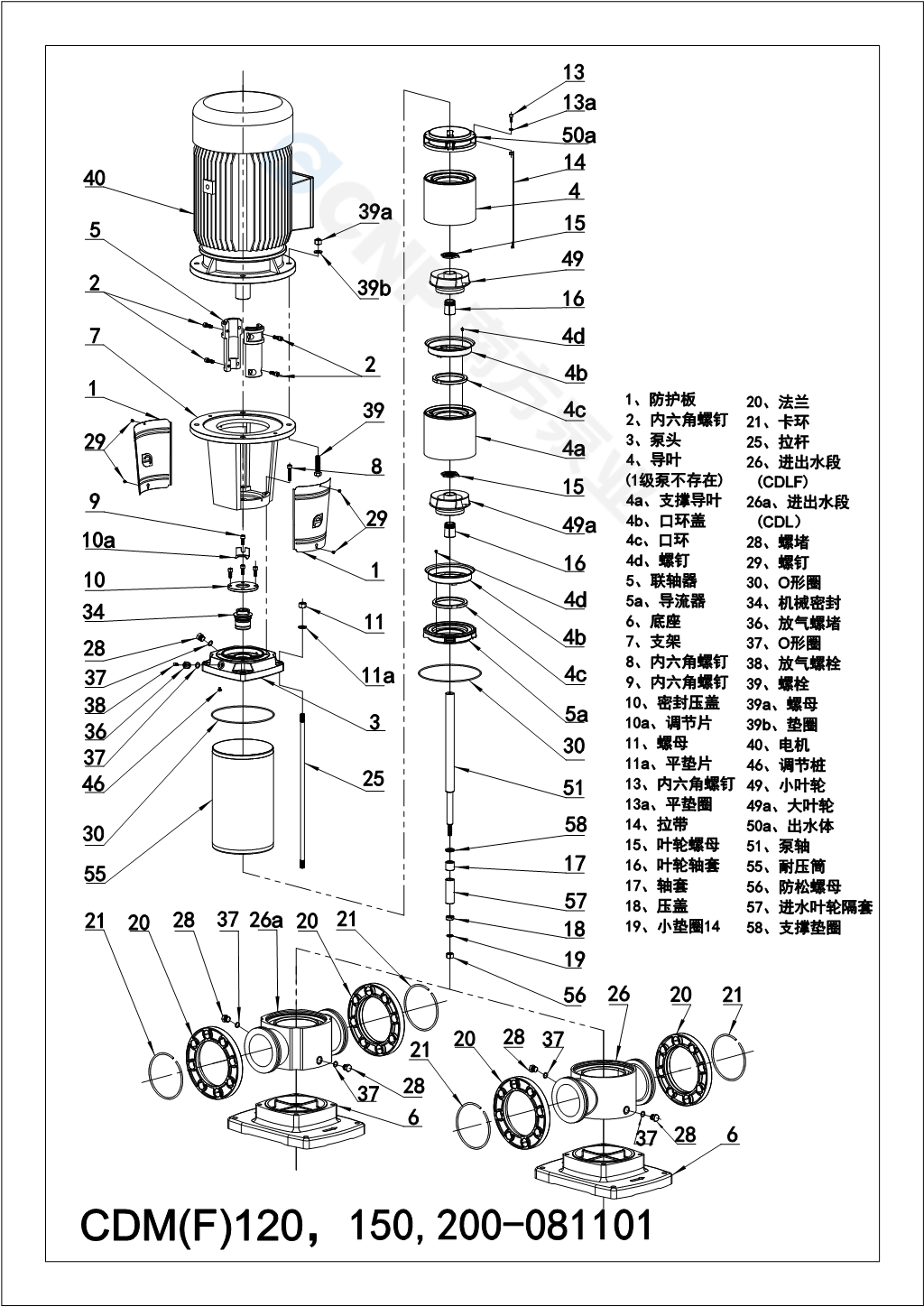 需要南方泵CDM120-1爆炸圖CAD文件 請加銷售人員微信索取