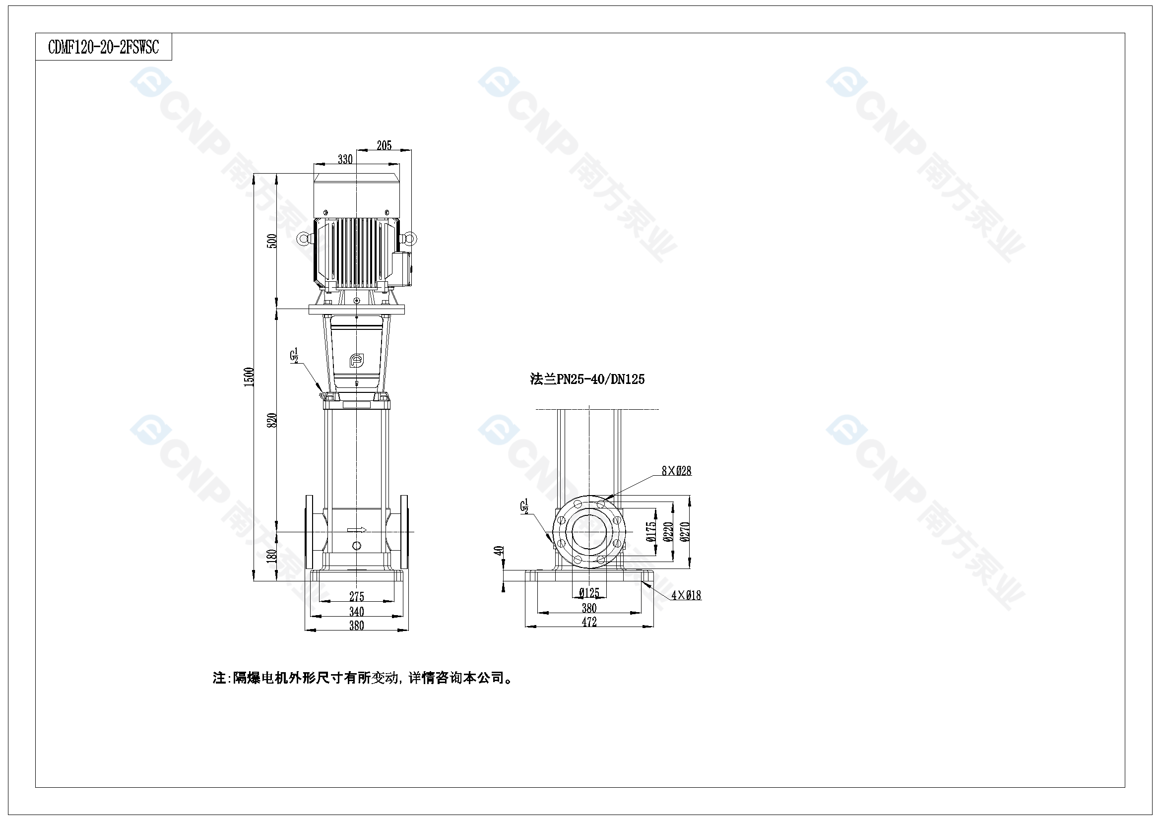 需要南方泵CDM120-2-2外形CAD文件 請加銷售人員微信索取
