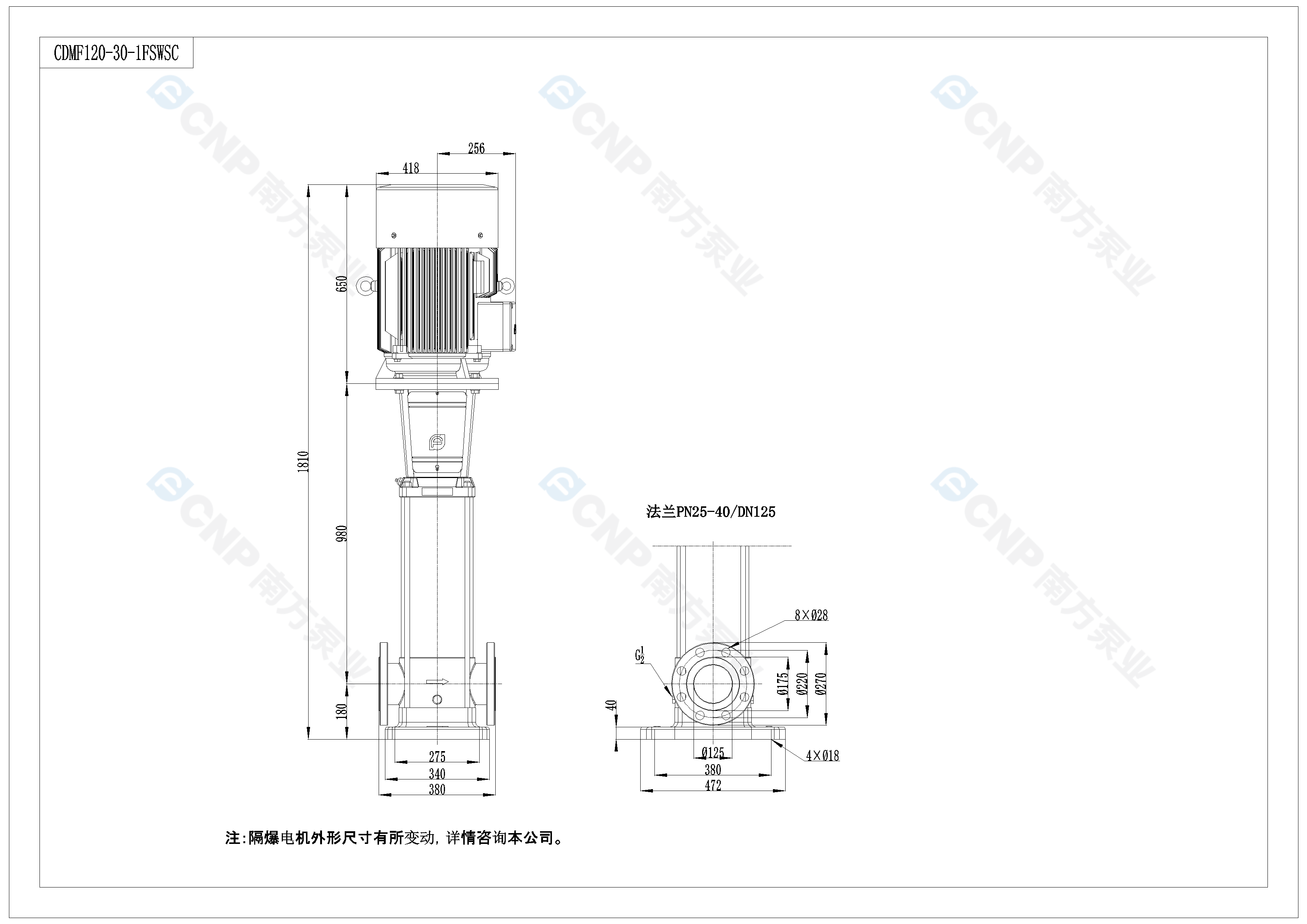 需要南方泵CDM120-3-1外形CAD文件 請加銷售人員微信索取