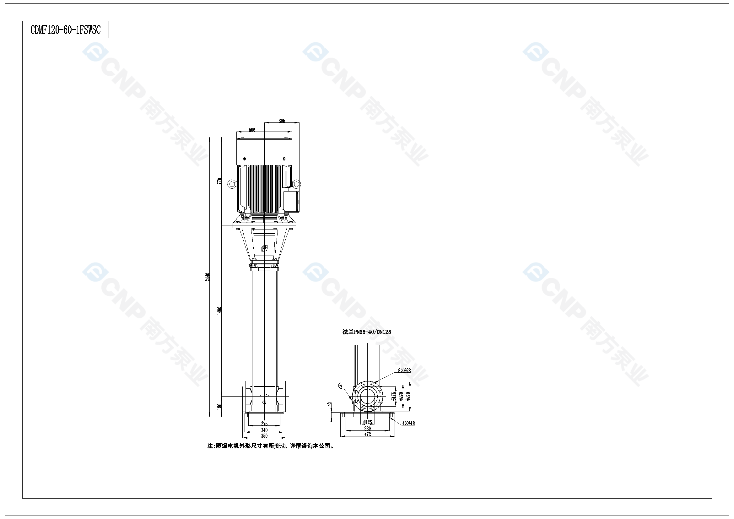 需要南方泵CDM120-6-1外形CAD文件 請加銷售人員微信索取