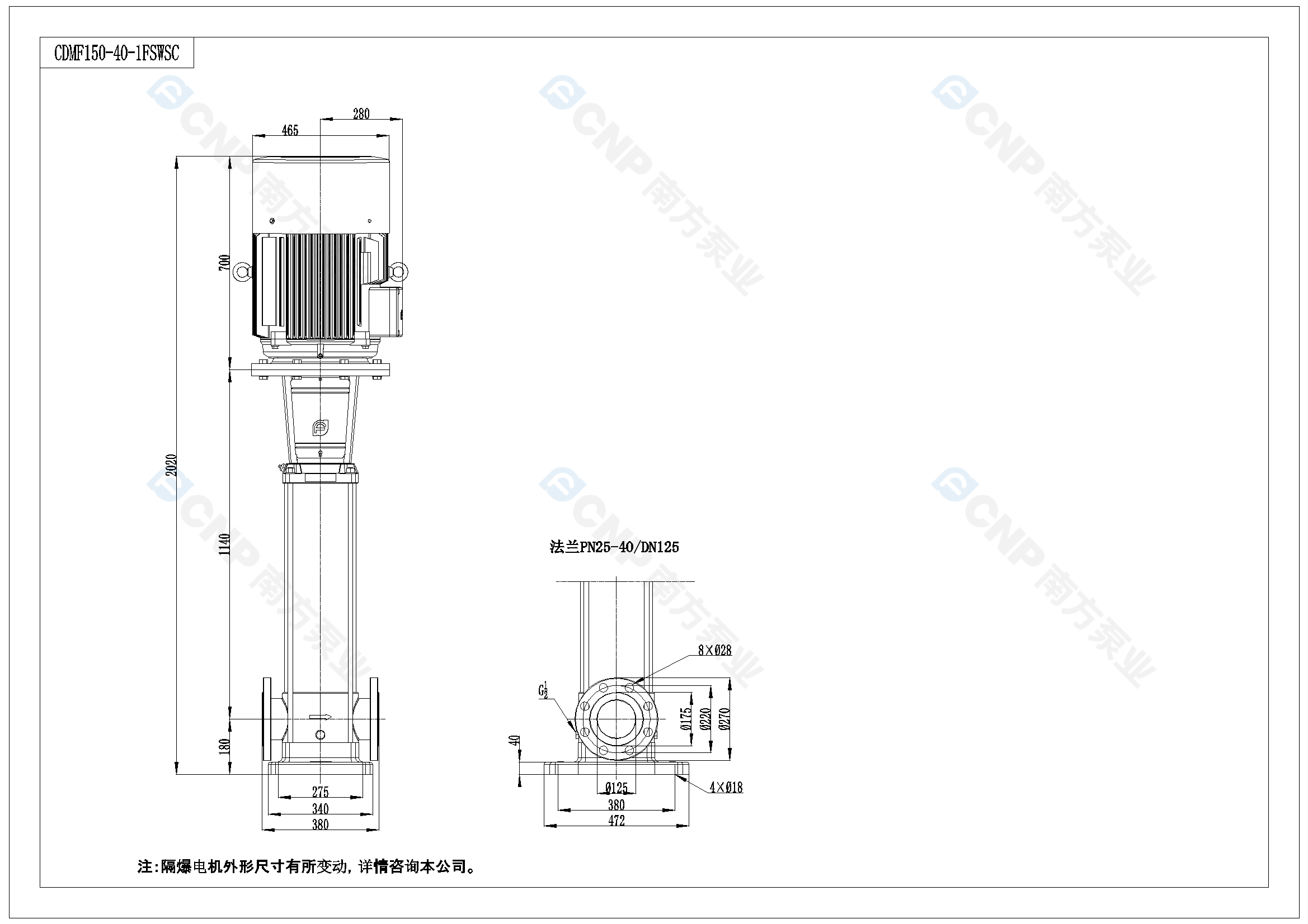 需要南方泵CDM150-4-1外形CAD文件 請加銷售人員微信索取