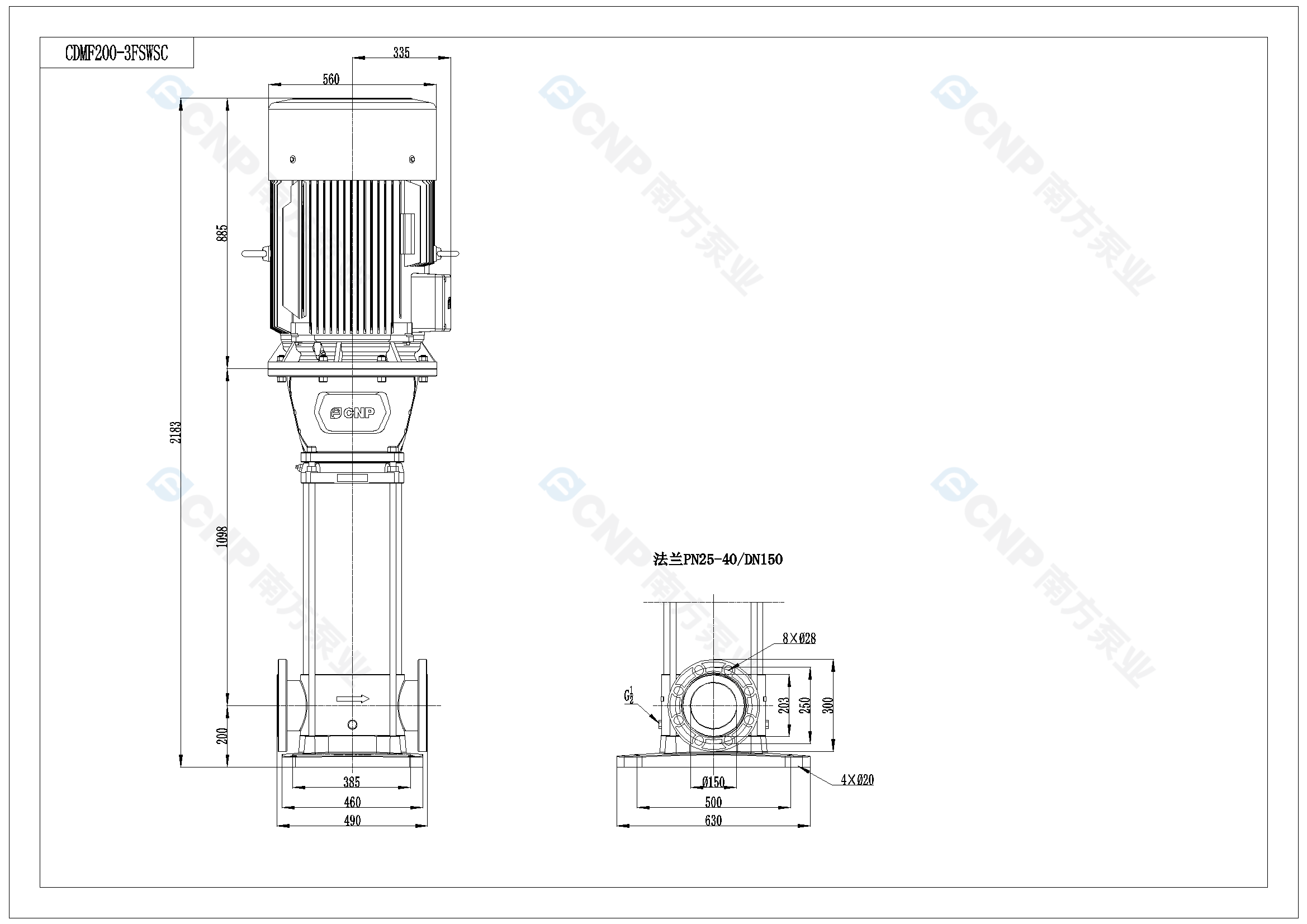 需要南方泵CDM200-3外形CAD文件 請加銷售人員微信索取