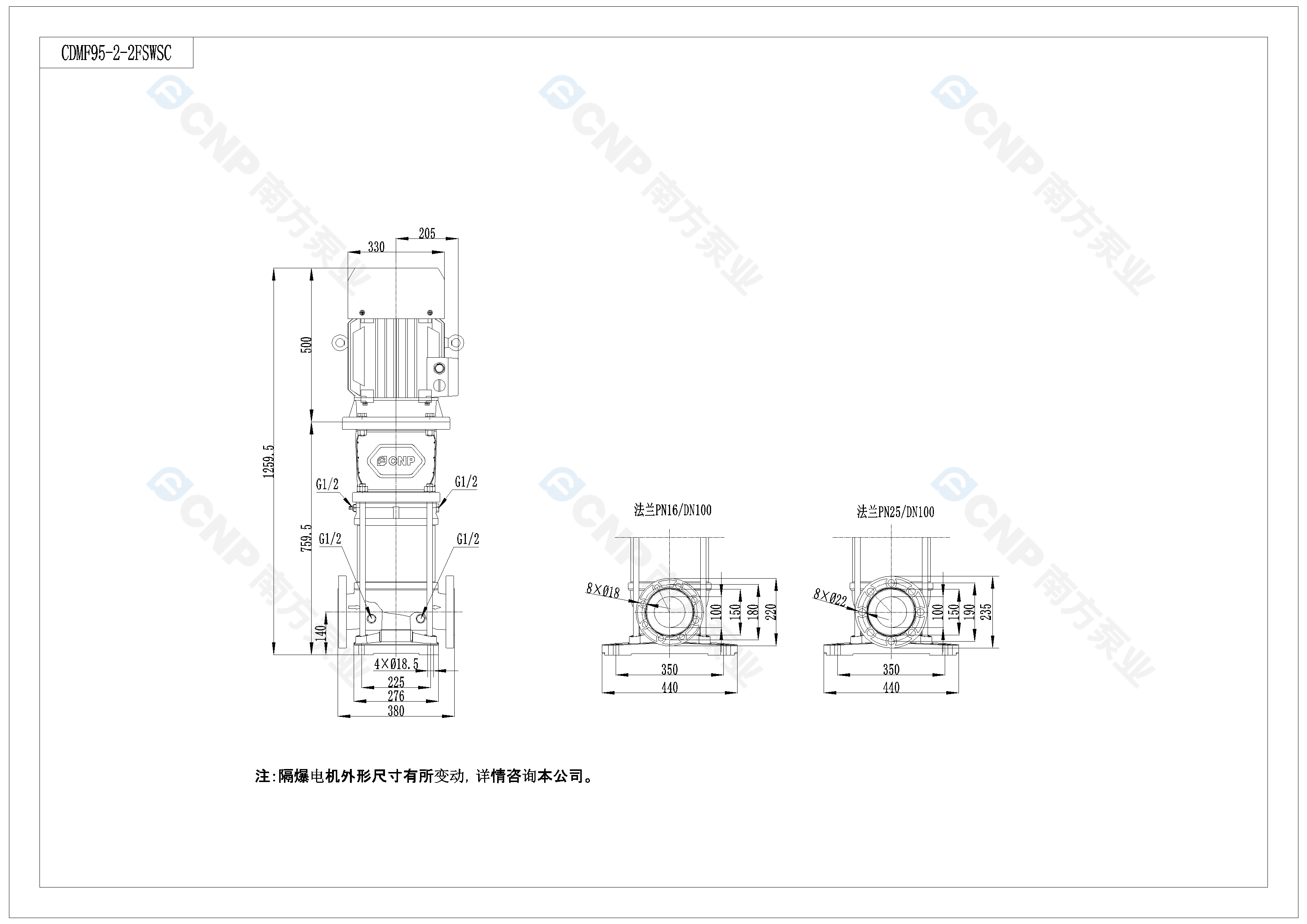 需要南方泵CDM95-2-2外形CAD文件 請加銷售人員微信索取