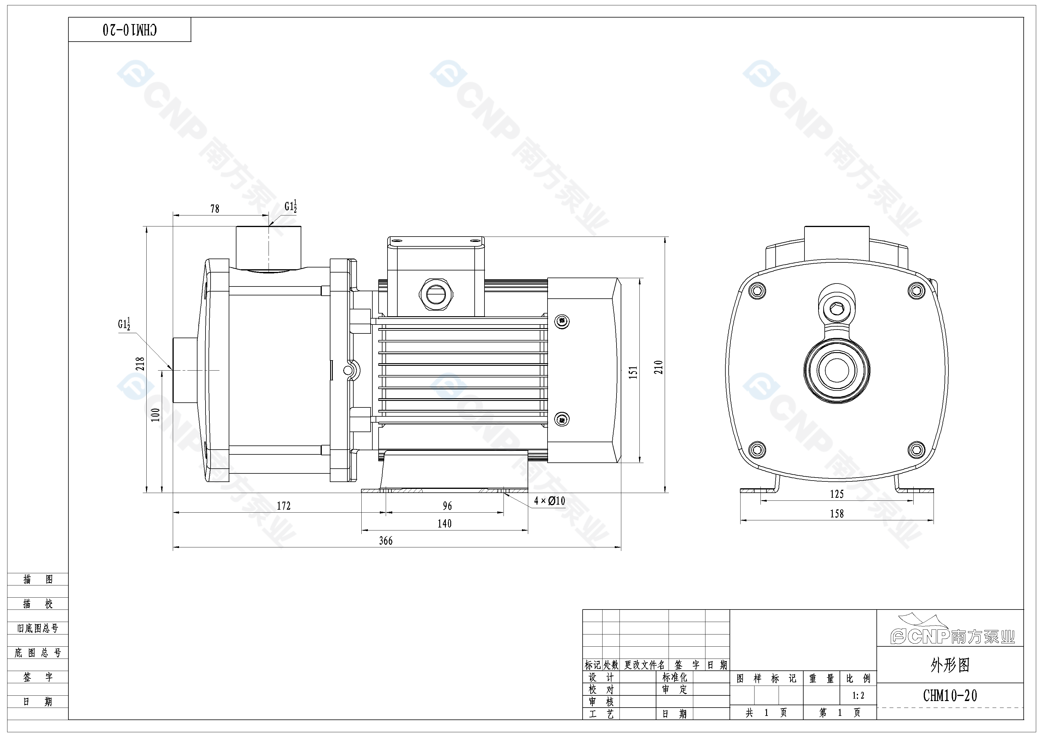 南方泵業CHM10-20水泵明細參數
