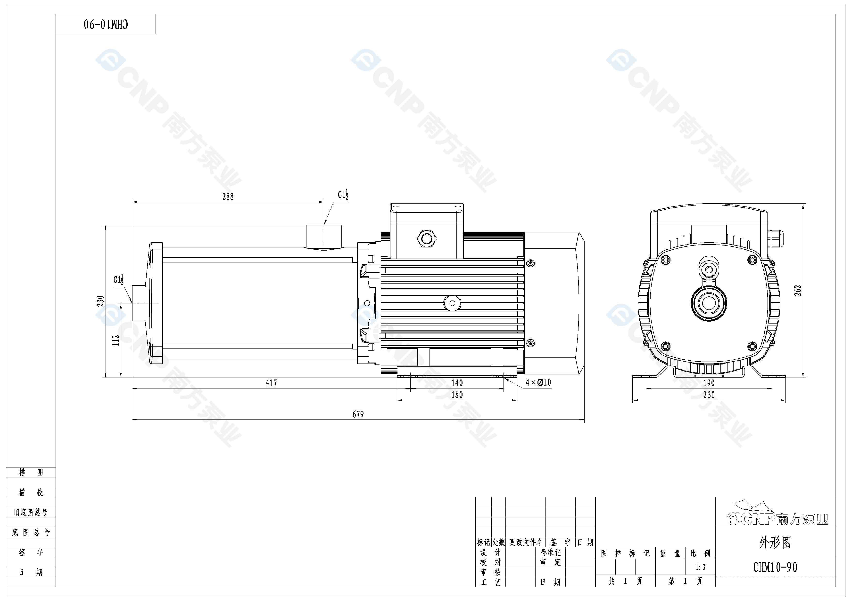 您的位置: 南方泵業 > 在線選型 > 臥式多級離心泵 > CHM(50Hz) > CHM10-90