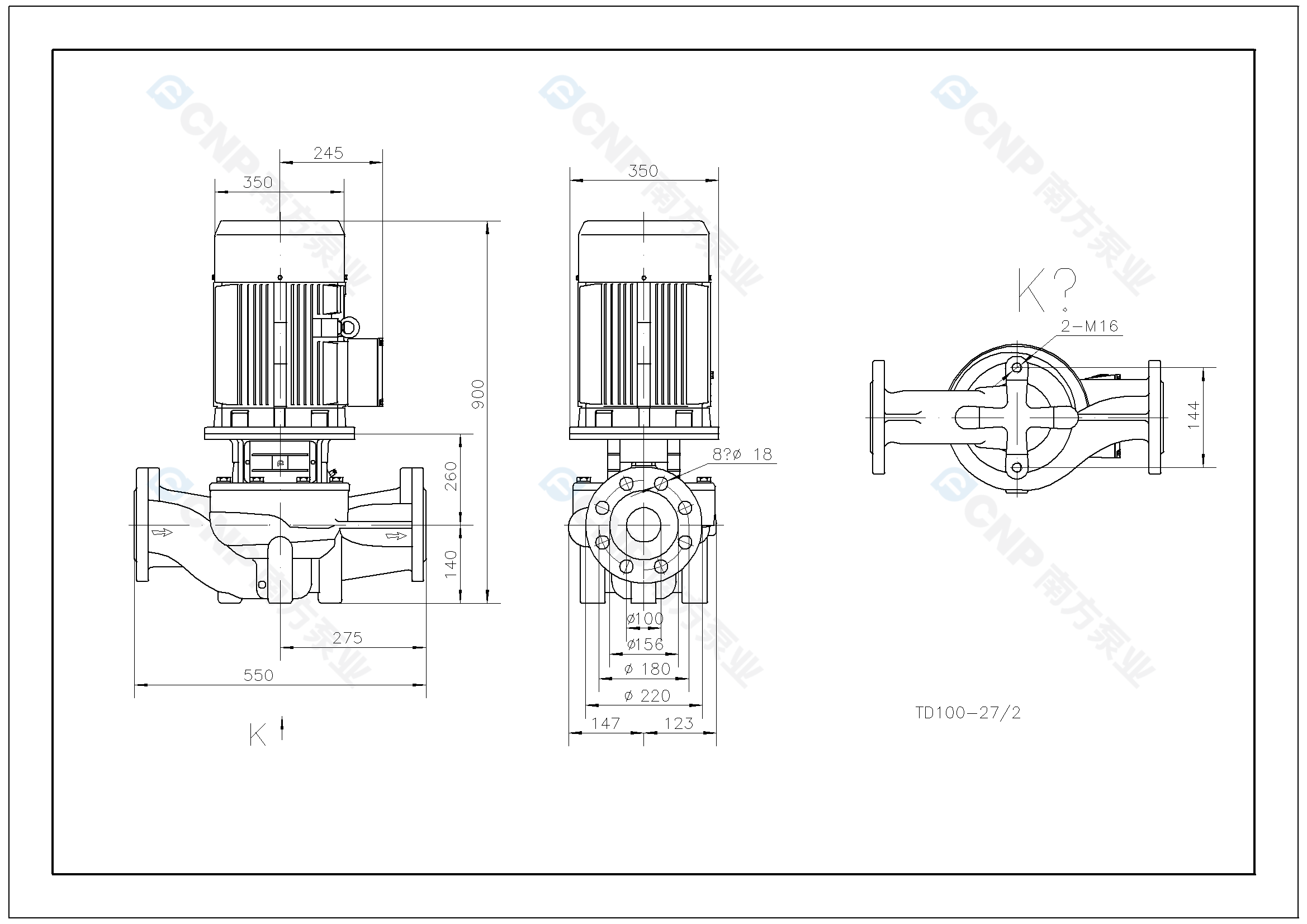 需要南方泵TD100-27/2外形CAD文件 請加銷售人員微信索取