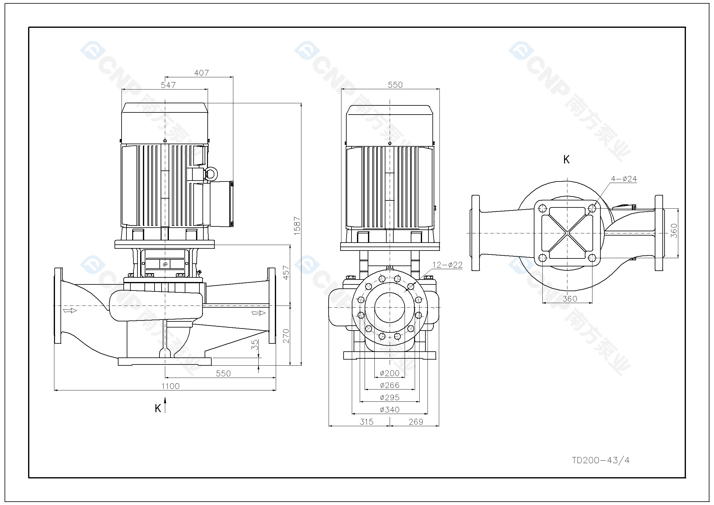 需要南方泵TD200-43/4外形CAD文件 請加銷售人員微信索取